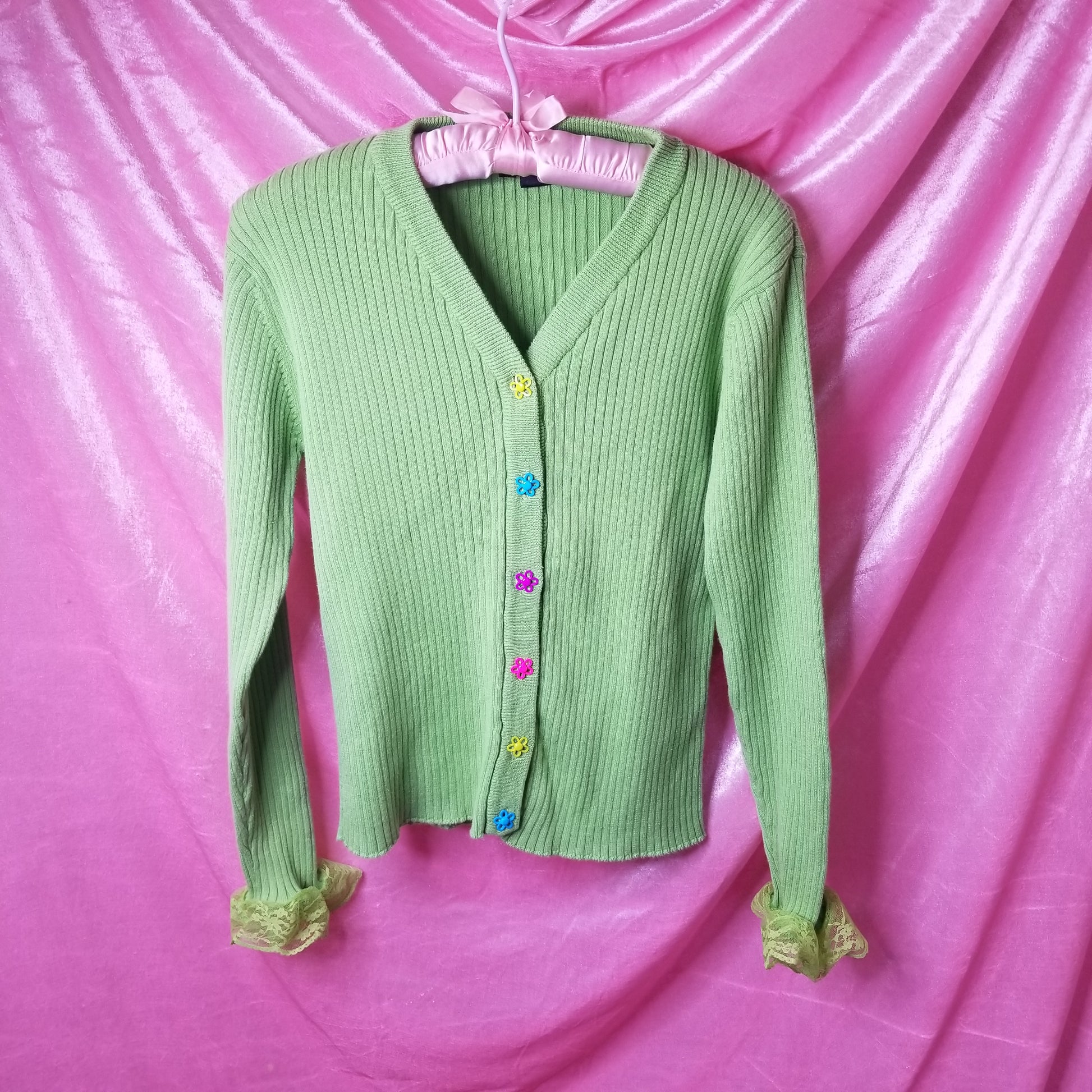 Candy flowers ribbed cardigan