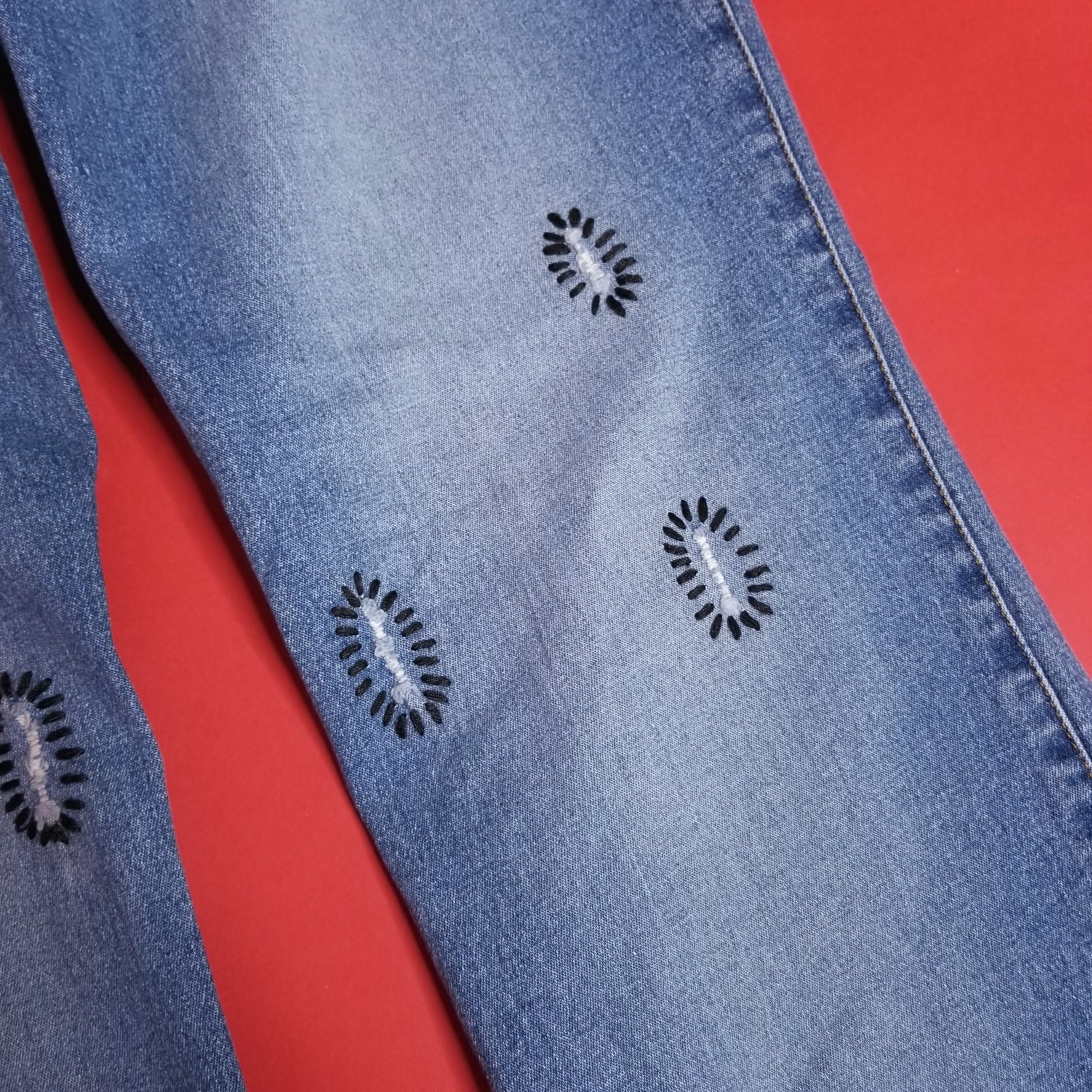 Blinged out bedazzled jewels on the top waistband and back with embroidered detailing